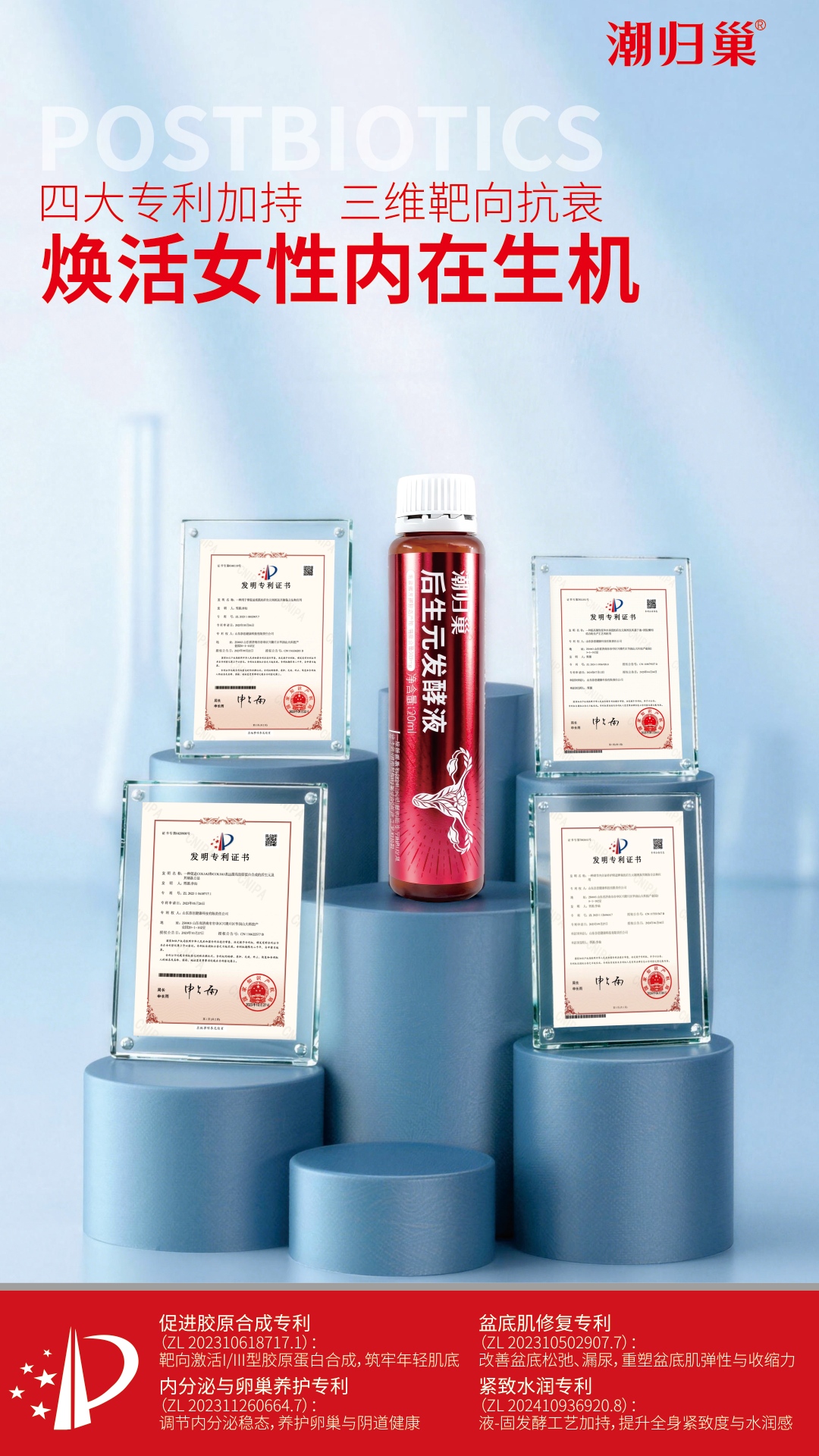 潮归巢®后生元发酵液:以四大国家专利构筑核心优势